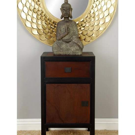 This understated cabinet provides storage with style in your living room, hallway or bedroom. It also features one slide-out drawer and one cabinet door.