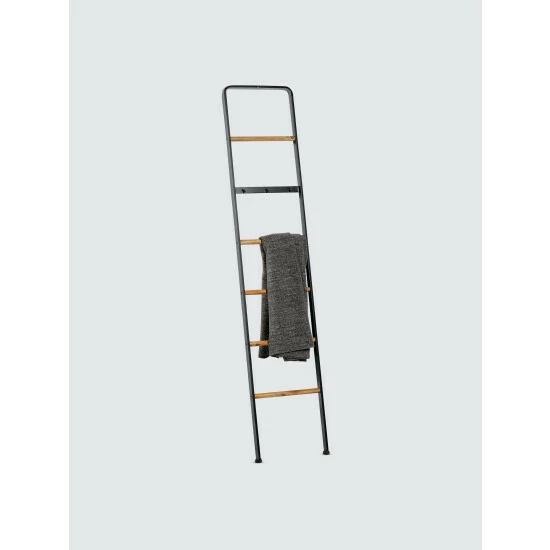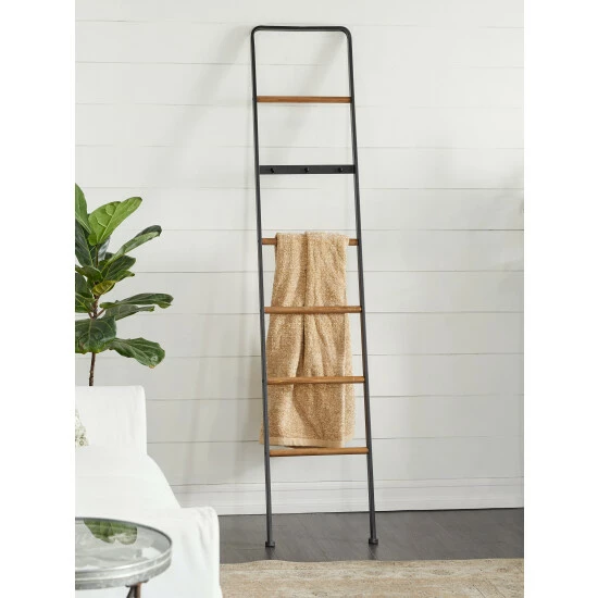 Whether you are in a city apartment or a sprawling suburban house, this stylish ladder is a unique way to hang and display items. Lightweight and easy to move around, it’s perfect for a bedroom, where you can drape clothing over it and hang lightweight items on the 3 pegs. The beautiful, light wood and gray iron adds style to your bathroom. Dry towels on the slats and hang washcloths on the pegs. Rubber pads on the base provide stability, while protecting furniture and tabletops from scratches.