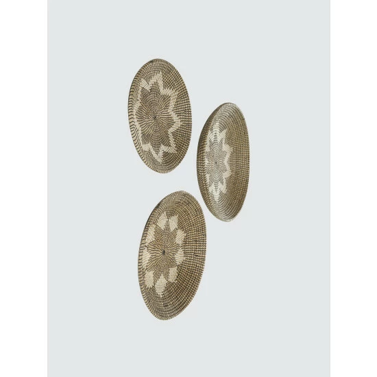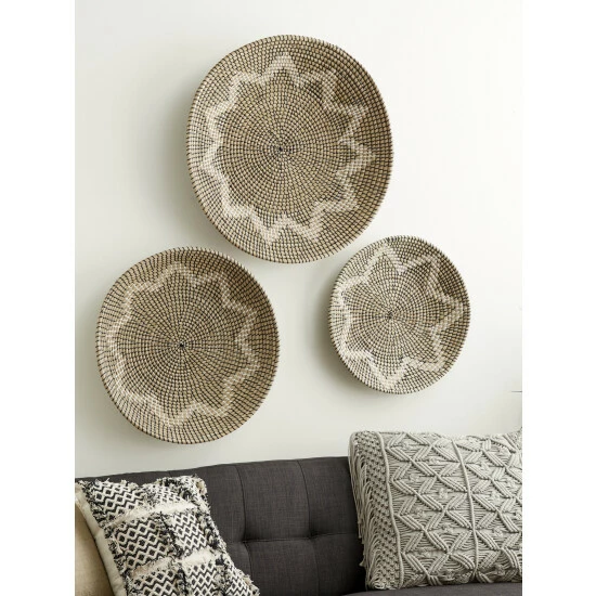 Bring rich dimension to a blank wall with this woven wall decor set. Each piece is made from natural materials woven like a basket. You can also use these as plate chargers because of the invisible hanging hardware.