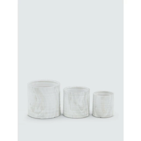 When filled with plants, this set of cylindrical planters brings tranquility to your space, promoting wellness and creating an immediate feeling of relaxation. These decorative planters are sure to add bundles of charm to your home. Beautifully detailed, they feature a stone finish and three slanted legs for extra support. These planters are made of fiber clay, ceramic and wood. They’re ideal for outdoor use. Each piece can withstand all weather types.