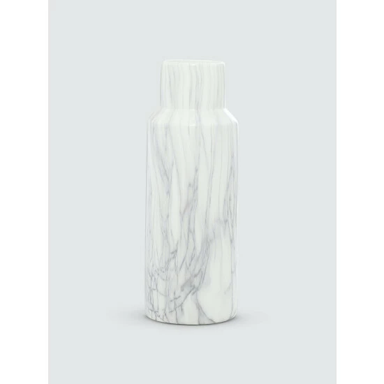 Add a creative touch of modern-inspired decoration into your traditional, contemporary and minimalist living spaces with this marbling inspired vase. A classic tall white-glazed ceramic vase with a pouring gray-toned marble design and a flat round base made of stoneware material, its elegant white tone makes it ideal for both light and dark-hued interiors, making it a stunning focal point piece for coffee tables, desks, dining areas, study rooms, meeting rooms and home office. Rubber pads on the base provide stability, while protecting furniture and tabletops from scratches.
