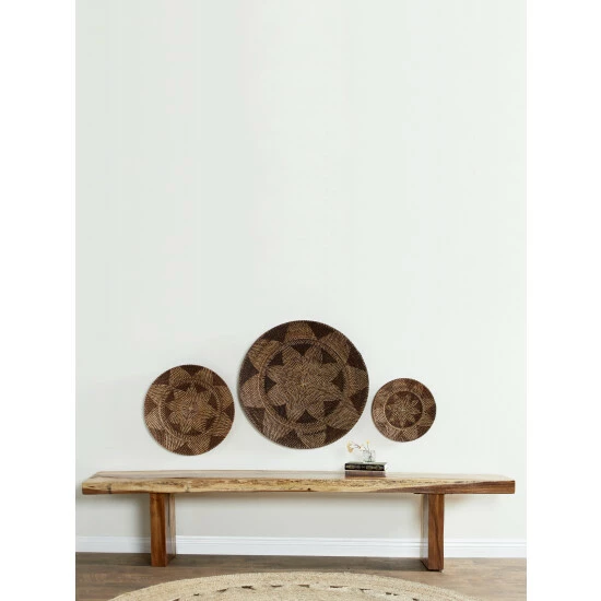Bring rich dimension to a blank wall with this woven wall decor set. Each piece is made from natural materials that are woven like a basket. You can also use these as plate chargers because of the invisible hanging hardware.
