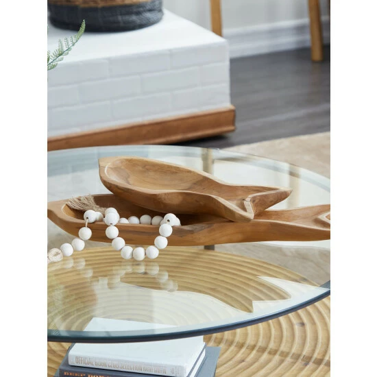 Amplify the ambiance of your space with this set of decorative, bowl-like trays that give a coastal-themed home a final touch. The set is made out of solid teakwood, so it will remain in pristine condition for years to come. The trays’ remarkable characteristics include a natural finish and exposed wood grain. Let these accent pieces provide a sense of style to your home when displayed on a shelf, countertop, mantel or accent table.