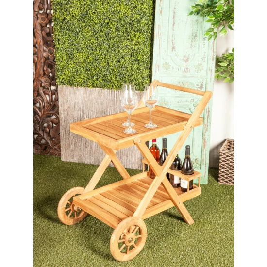 This playful and compact cart makes the perfect mini bar for your patio or deck. You can use it to serve food and drinks to your guests or even as a plant stand. The teakwood material is also water-resistant and very durable.