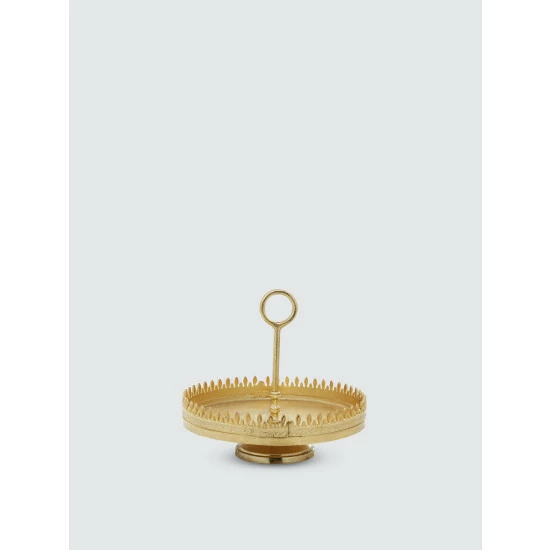 Stunning gold tray for hors d’oeuvres when entertaining, as a candy tray during the holidays or use all year as a display tray in your glam or vintage-styled space. A great storage unit to display your decor and memorabilia in a compact friendly setting. Rubber pads on the base provide stability, while protecting furniture and tabletops from scratches.