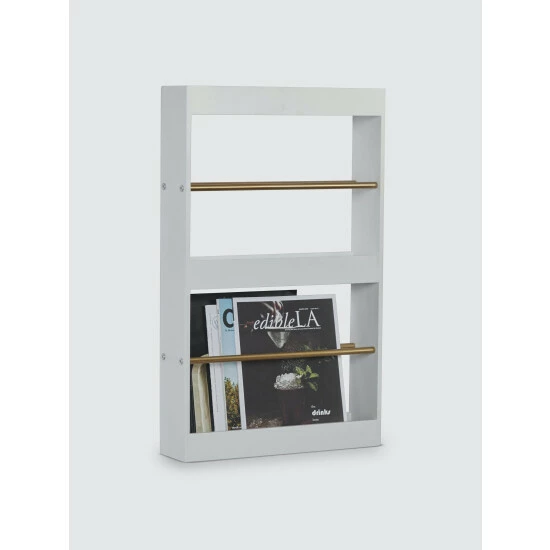This wall-mounted magazine holder features a wooden body and iron rails, making it a suitable addition to modern interiors. It has three levels of racks that can fit reading magazines, photo books, small coffee table books and file folders. Hang it in the office or at home via the two metal loops on the back.