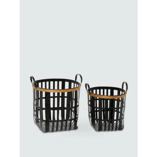 This metal and wood basket set has a traditional woven look that goes well with contemporary concepts. It takes all the key features—an open weave and handles—but uses the combination of bamboo and iron in the construction. Use them to store towels, blankets, decor, fruit and clothing. They can also function as laundry baskets, game console organizers and crafts storage. Place them at your door to store umbrellas, scarves, hats and mittens.