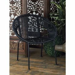 This stylish chair is a great addition to your living room or patio. The curved back and armrests provide comfortable all-day support from sturdy ropes. The chair is also constructed of materials durable enough to withstand changes in weather.